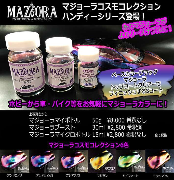 ホビーから車・バイク等、全ての貴方のオンリーワンをマジョーラカラーにペイントして頂きたくラインナップしました。