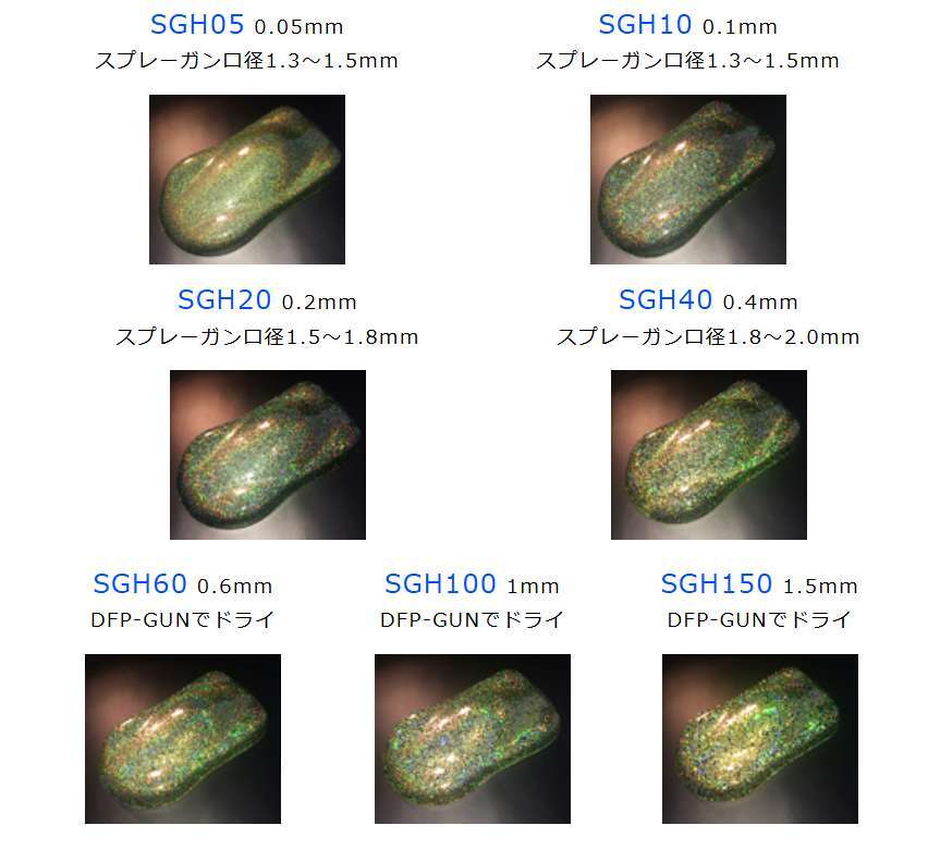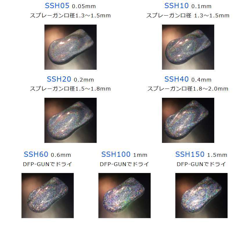 します。更にアルミ蒸着する事により反射率を高め、通常の着色フレークとは違い、裁断側面部分からの発色も非常に優れています。 レインボーに輝く高精度のホログラムフレークはカスタムシーンには 欠かせないアイテムとなるでしょう。
