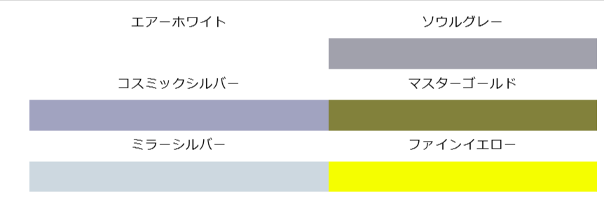 EkiShowの代表的な専用ベースカラー5色と