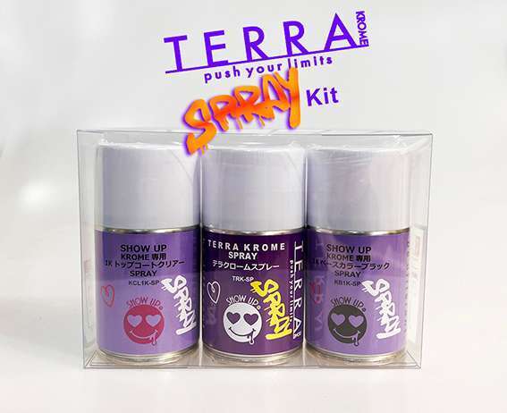 従来は通常の塗料として発売していましたTERRA KROMEが、 今回遂にお手軽にお試し頂ける画期的スプレーキットとなって登場(^^)/
